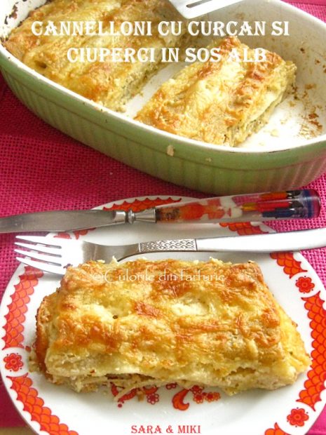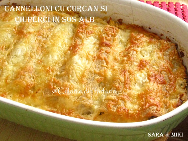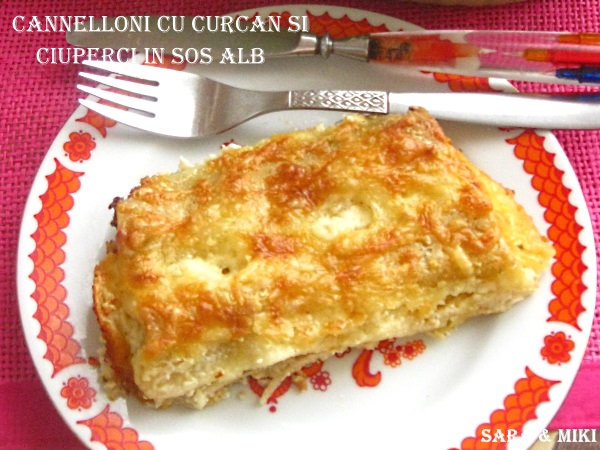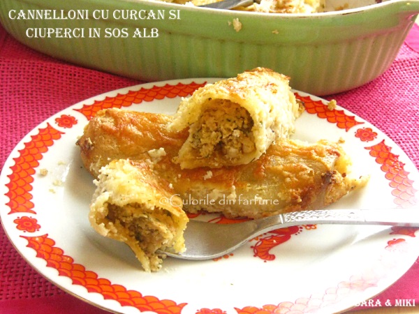 Cannelloni cu curcan si ciuperci in sos alb ca sa mai schimbam putin genul de mancare. Aceasta varianta cu carne de curcan si ciuperci este la fel de buna ca cea cu carne de porc si de pui in sos de rosii. Va invit la masa!