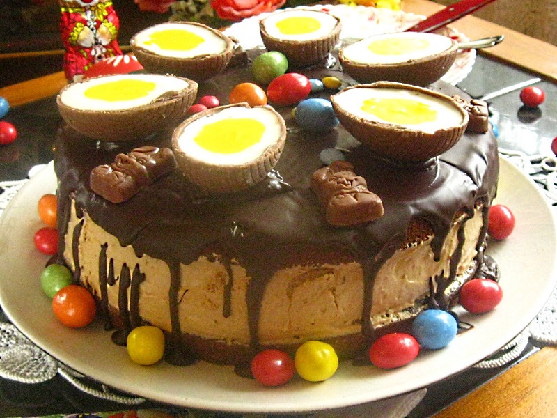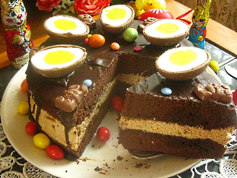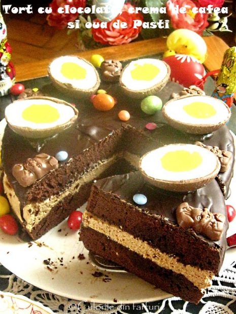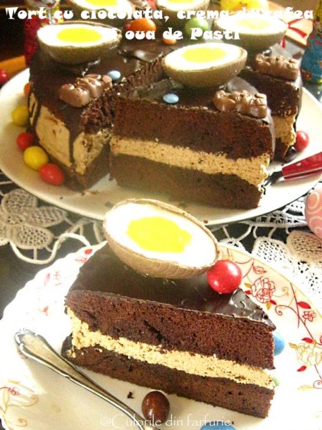 Tort cu ciocolata, crema de cafea si oua de Pasti