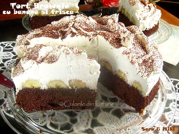 Mod de pregatire Tort Brownie cu banane si frisca: