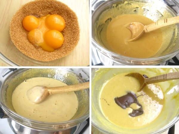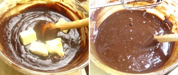 Separat batem ouale cu laptele. Intr-n vas topim ciocolata neagra impreuna cu untul la baine-marie sau in cuptorul cu microunde, cum sunteti obisnuiti mai bine.