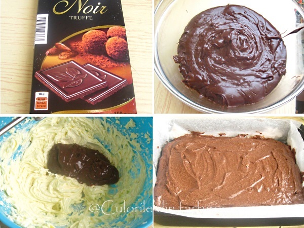 Cernem separat ingredientele uscate: faina, cacao si praful de copt. Oprim mixerul si cu o spatula sau un tel incorporam cu miscari ample ingredientele uscate.