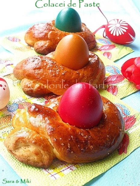 Colacul impletit din aluat de cozonac se preteaza bine la Sarbatorile de Paste pentru ca in golul central se pot aseza ouale vopsite, dar de ce nu ar merge si in alta perioada!