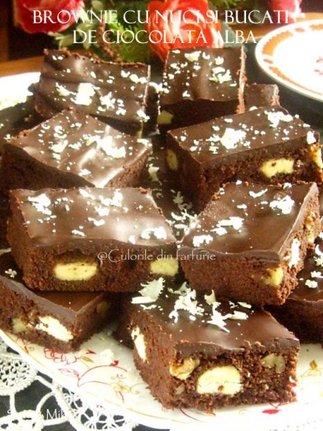 Brownie cu nuci si bucati de ciocolata alba o minunatie de prajitura. Ingredientele de baza necesare pentru a face brownie sunt zahar, oua, faina, unt si ciocolata. Read More…