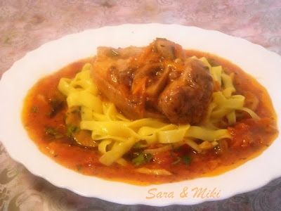 Rasol de porc in sos picant cu paste