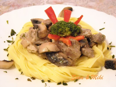 Tagliatelle cu vita si ciuperci, in sos de marar