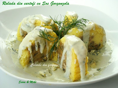 Se taie rulada in felii, se aranjeaza pe farfurie preincalzita şi si se serveste cu sosul gorgonzola.