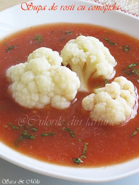Supa de rosii cu conopida o supa delicioasa, buna si rece si calda. Cum pietele sunt pline de rosii este pacat sa nu profitam de ele. O supa rapida si ieftina.