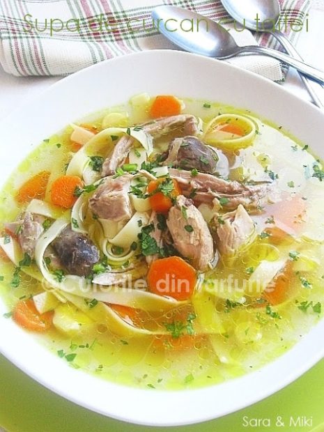 Supa de curcan cu taitei o supa galbena si cu palcuri de grasime deasupra, nelipsita duminica la masa de pranz in zona Banatului.