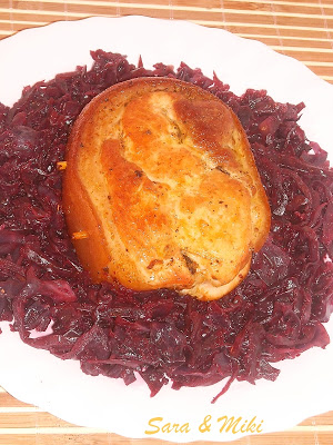 Dupa aceea se introduce la cuptor, pentru o ora si jumatate. Daca este nevoie se acopera cu o folie de aluminiu, ca sa nu se arda. Cand carnea este gata se aseaza pe un platou, se acopera si se lasa la odihna 15 min. si doar dupa aceasta se taie felii.