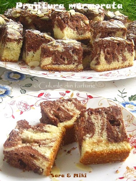 Prajitura marmorata se pregateste rapid si este minunata in orice zi a saptamanii, cand vrem ceva dulce. Este asemanatoare cu checul marmorat dar pregatit in tava. Ingredientul forte al acestei rete este lichiorul de oua, dar daca nu mai aveti lichior ramas de la Pasti, cum am avut eu, puteti sa-l inlocuiti cu smantana lichida sau lapte. Este la fel de buna, incercati!