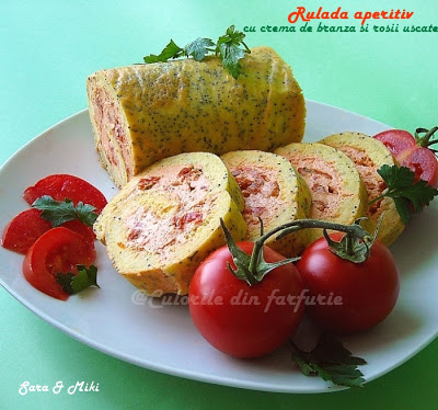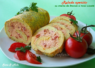 Rulada aperitiv cu crema de branza si rosii uscate este genul de aperitiv pe care il prefer, alaturi de Cosulete din foietaj. V-am prezentat deja Rulada aperitiv de rosii cu crema de branza. Desi denumirile se aseamana, ele sunt complect diferite. Sper sa va placa si sa le incercati.